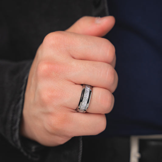 STELLAR VEIN - Silver Tungsten Meteorite Wedding Ring