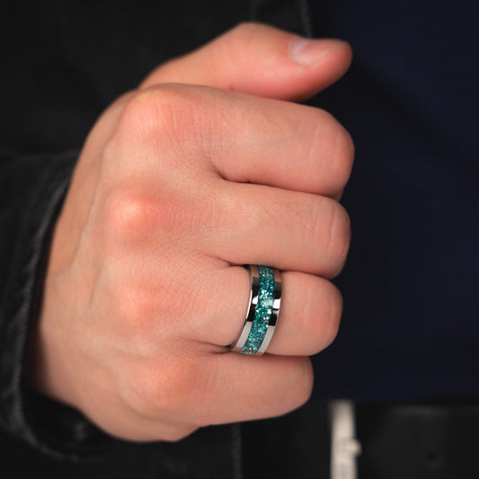 GLACIER CREST - Crushed Pacific Blue Opal Silver Tungsten Ring