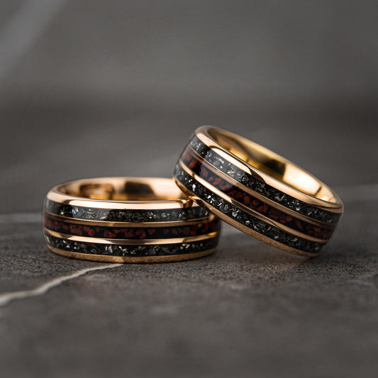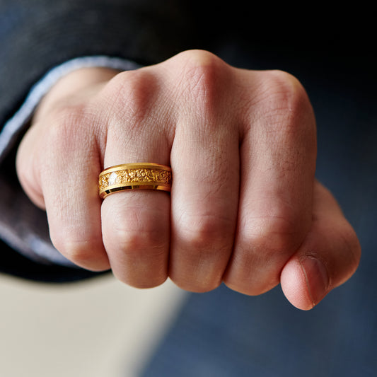 SKYLEAF Type 1 - Meteorite Gold Tungsten Leaf Flakes Wedding Band