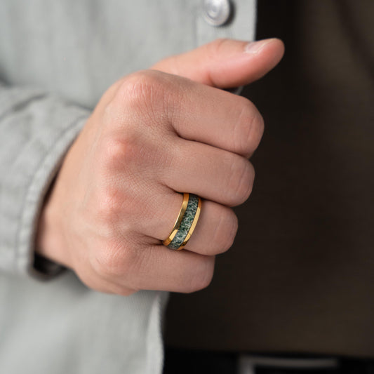MOSS SKY - Green Moss Agate Tungsten Wedding Band
