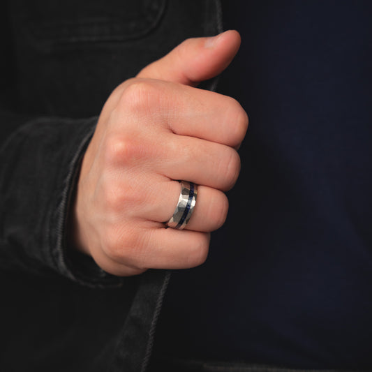 For far too long, wedding rings have been simple, uninspired bands of metal, lacking the personality and character of the wearer. But times are changing. More and more people are stepping away from traditional silver or gold bands, seeking rings that truly reflect their individuality and passion. Inspired by the raw, volcanic beauty of obsidian stone, this black hammered tungsten ring captures that same primal intensity and refined strength.